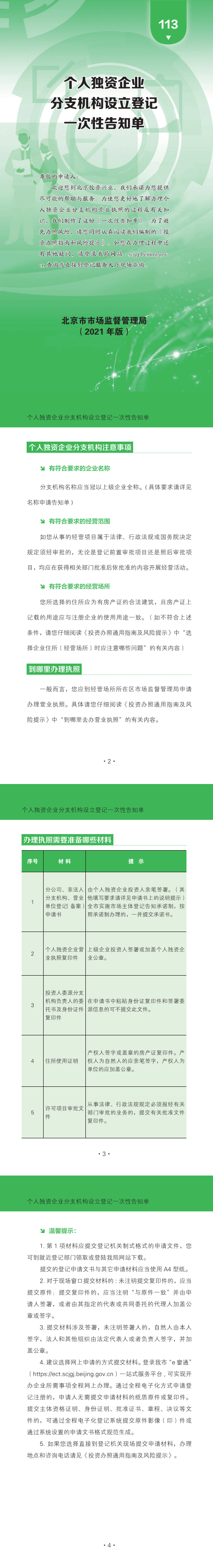 113-个人独资企业分支机构设立登记一次性告知单