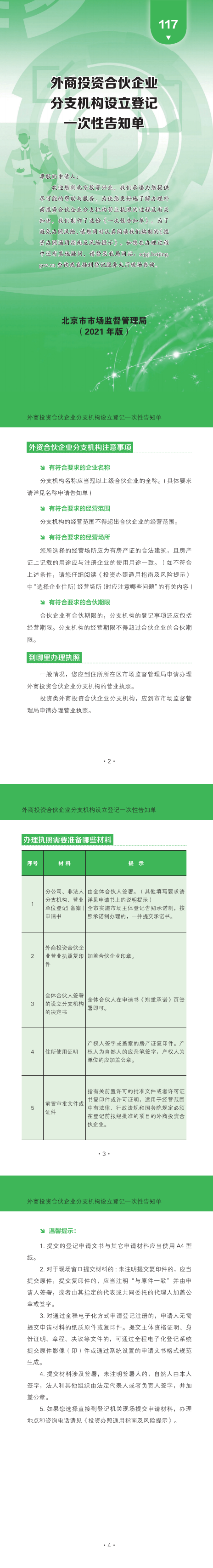 117-外商投资合伙企业分支机构设立登记一次性告知单