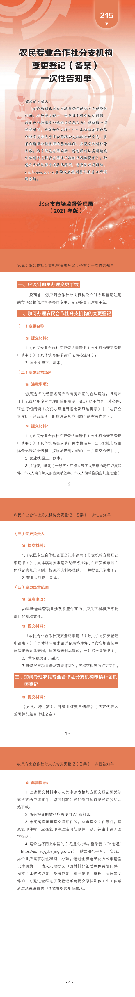 215-农民专业合作社分支机构变更登记(备案)一次性告知单