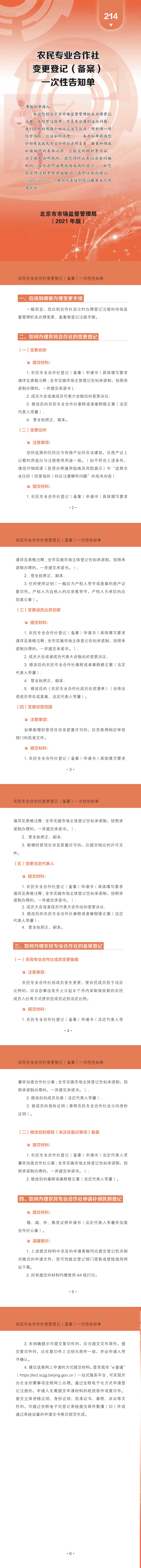 214-农民专业合作社变更登记(备案)一次性告知单