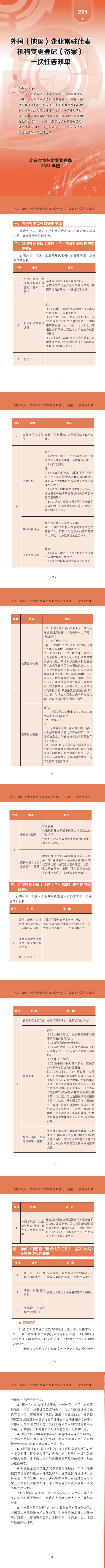 221-外国(地区)企业常驻代表机构变更登记(备案)一次性告知单