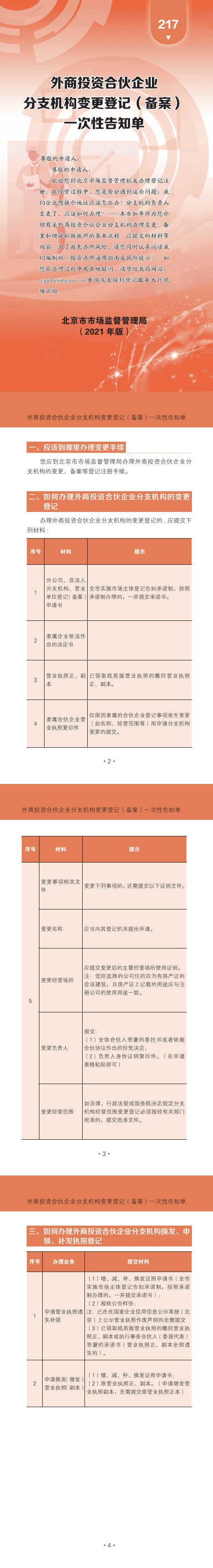 217-外资合伙企业分支机构变更登记(备案)一次性告知单