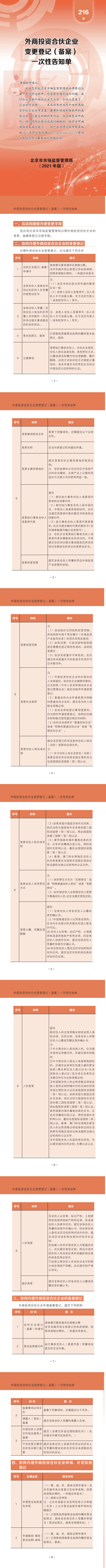 216-外资合伙企业变更登记(备案)一次性告知单