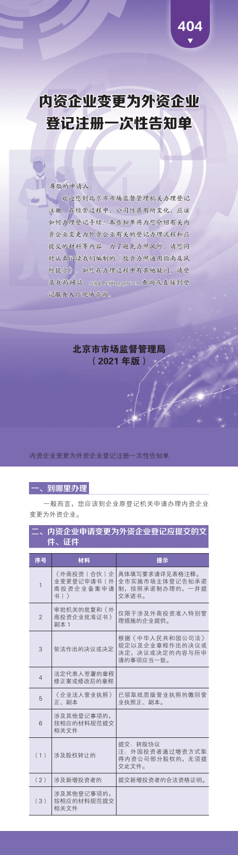 404-内资企业变更为外资企业告知单