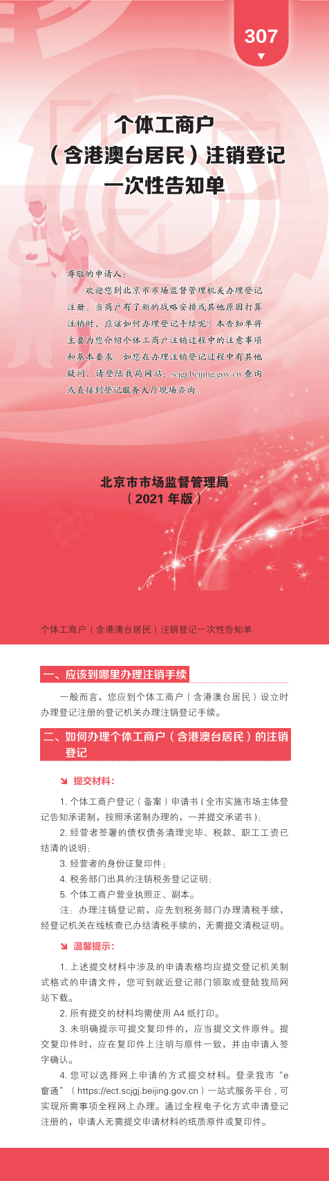 307-个体工商户(含港澳台居民)注销登记一次性告知单