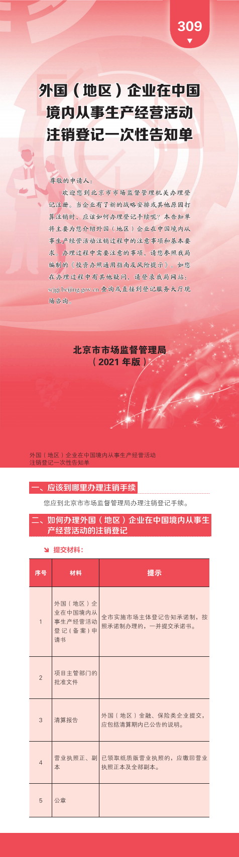 309-外国(地区)企业在中国境内从事生产经营活动注销登记一次性告知单