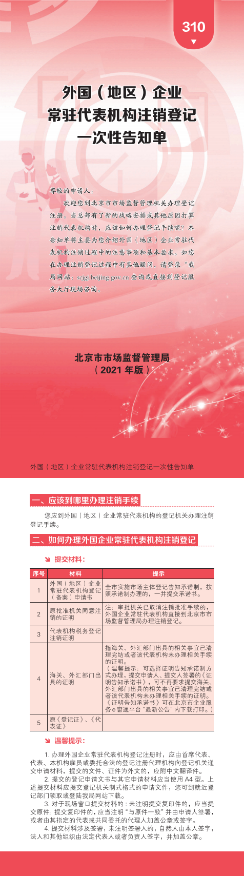 310-外国(地区)企业常驻代表机构注销登记一次性告知单