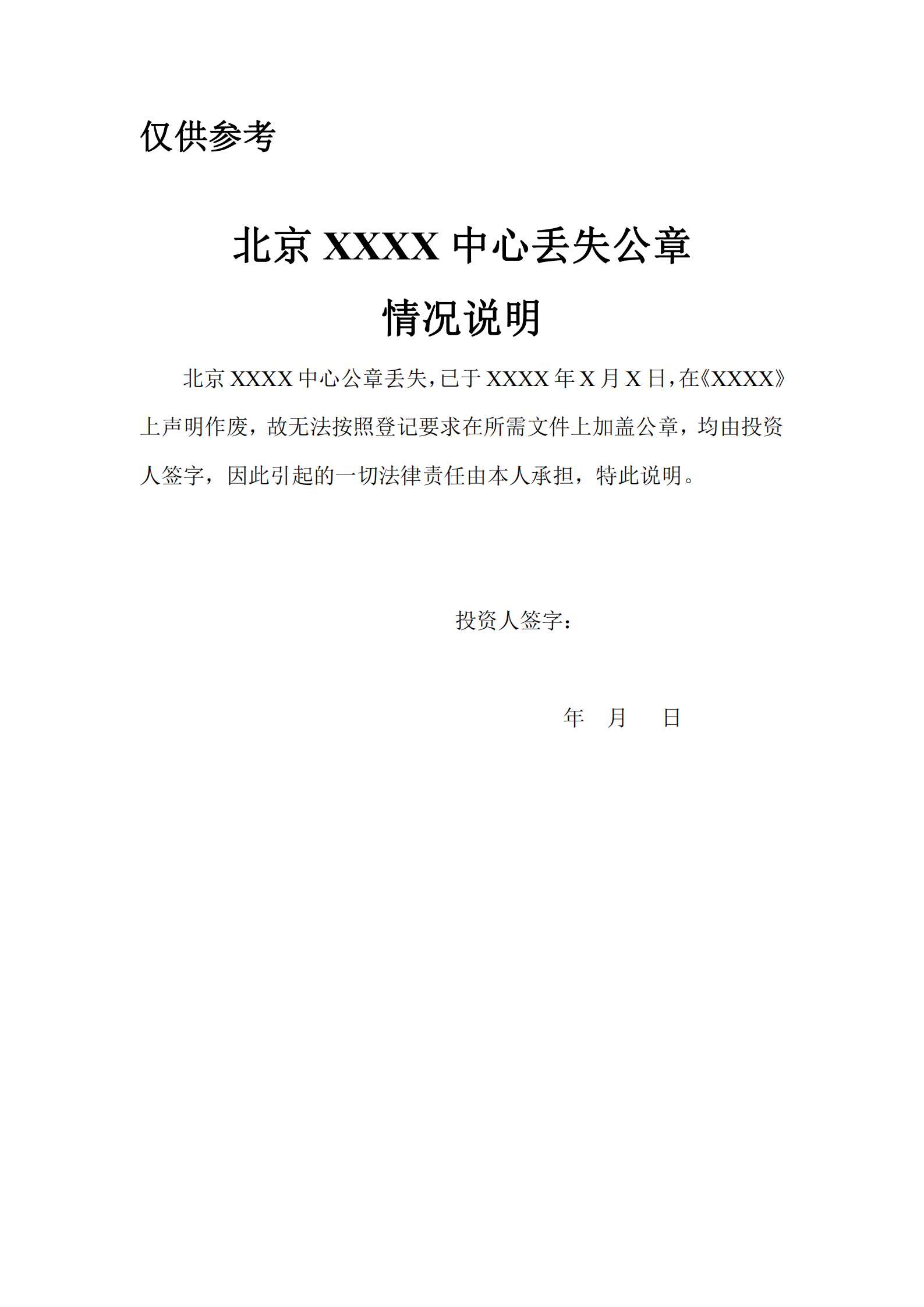 个人独资企业公章丢失证明