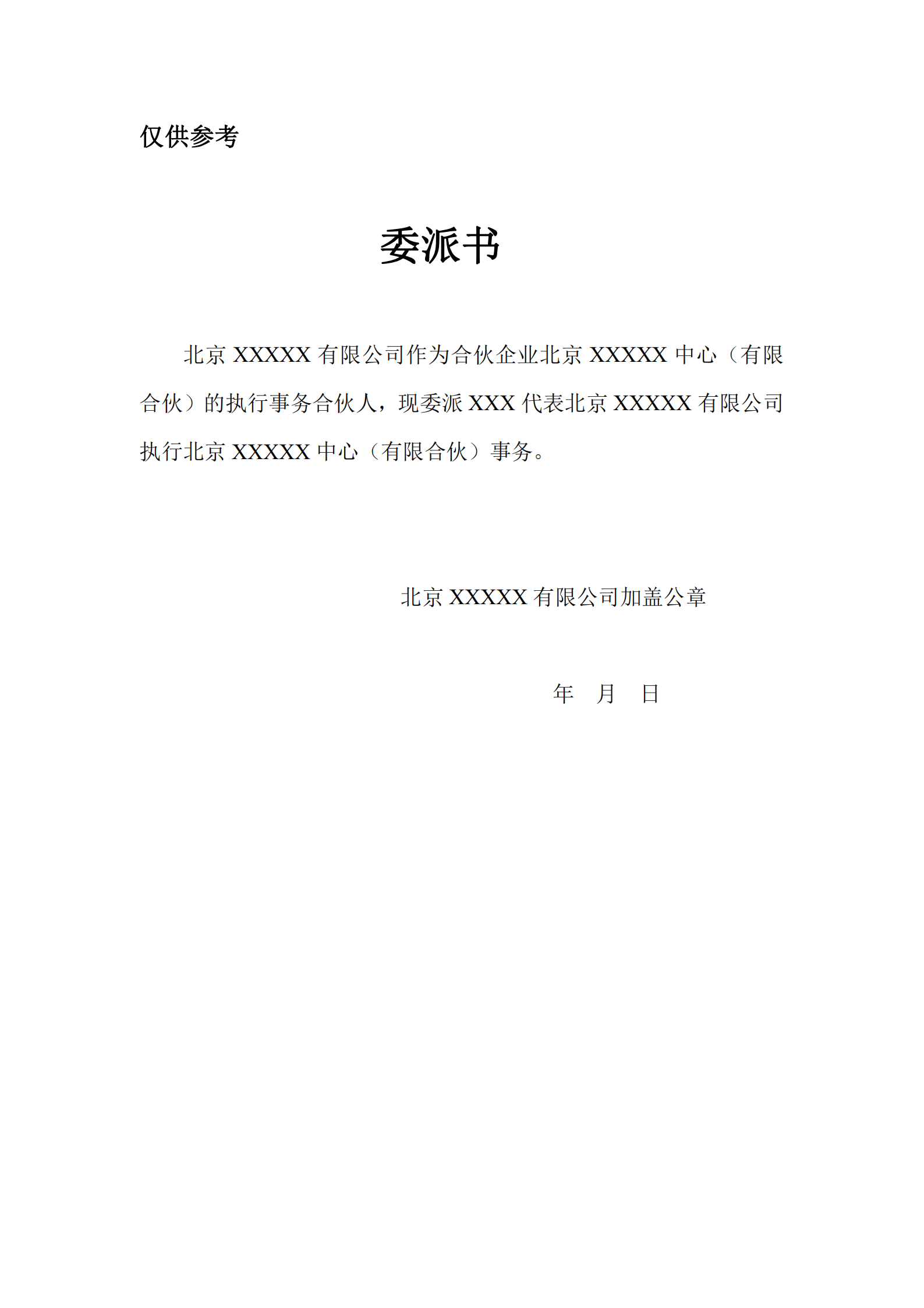 合伙企业(执行合伙人的委派书)