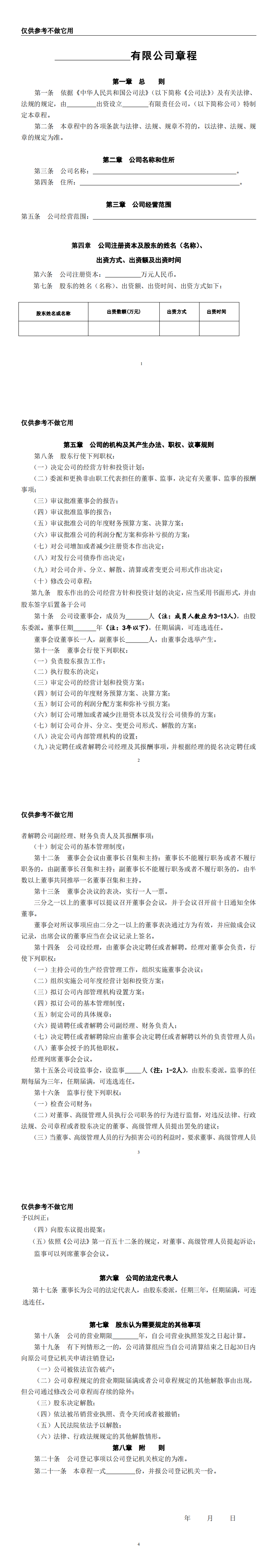 有限责任公司章程=(一人设董事会)