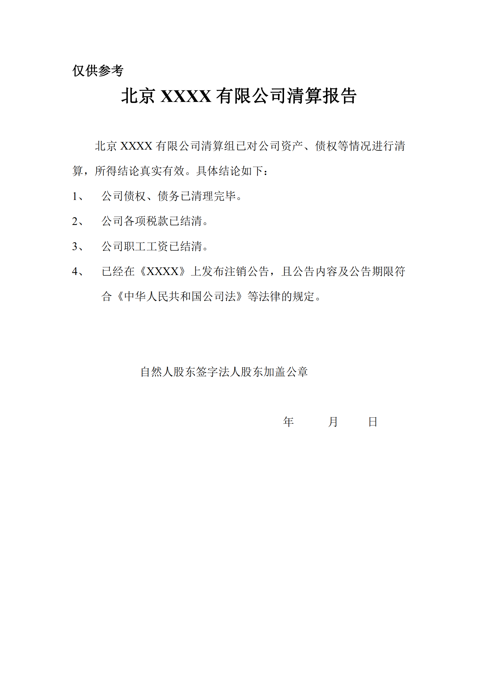公司(注销清算报告)