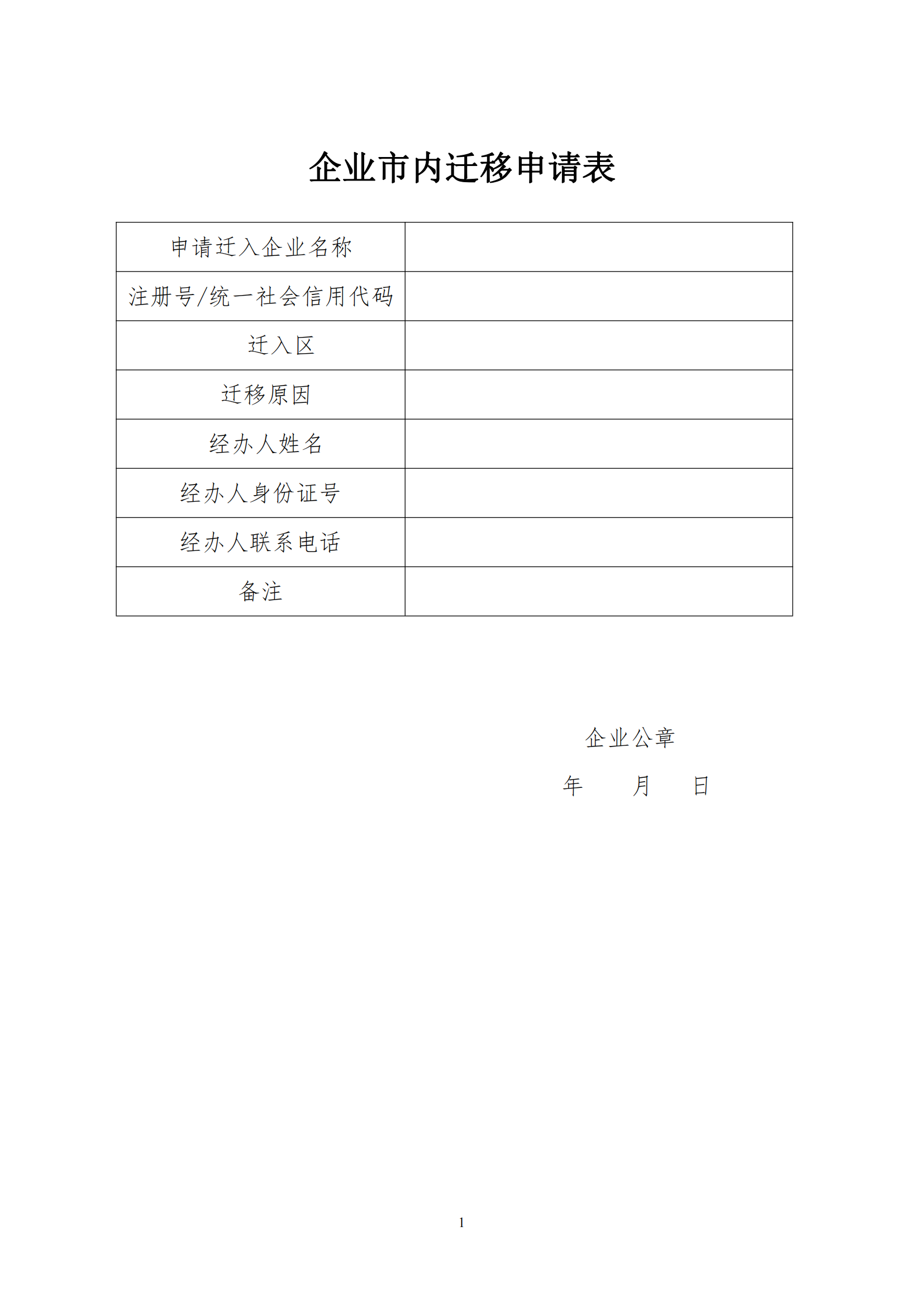 企业市内迁移申请表