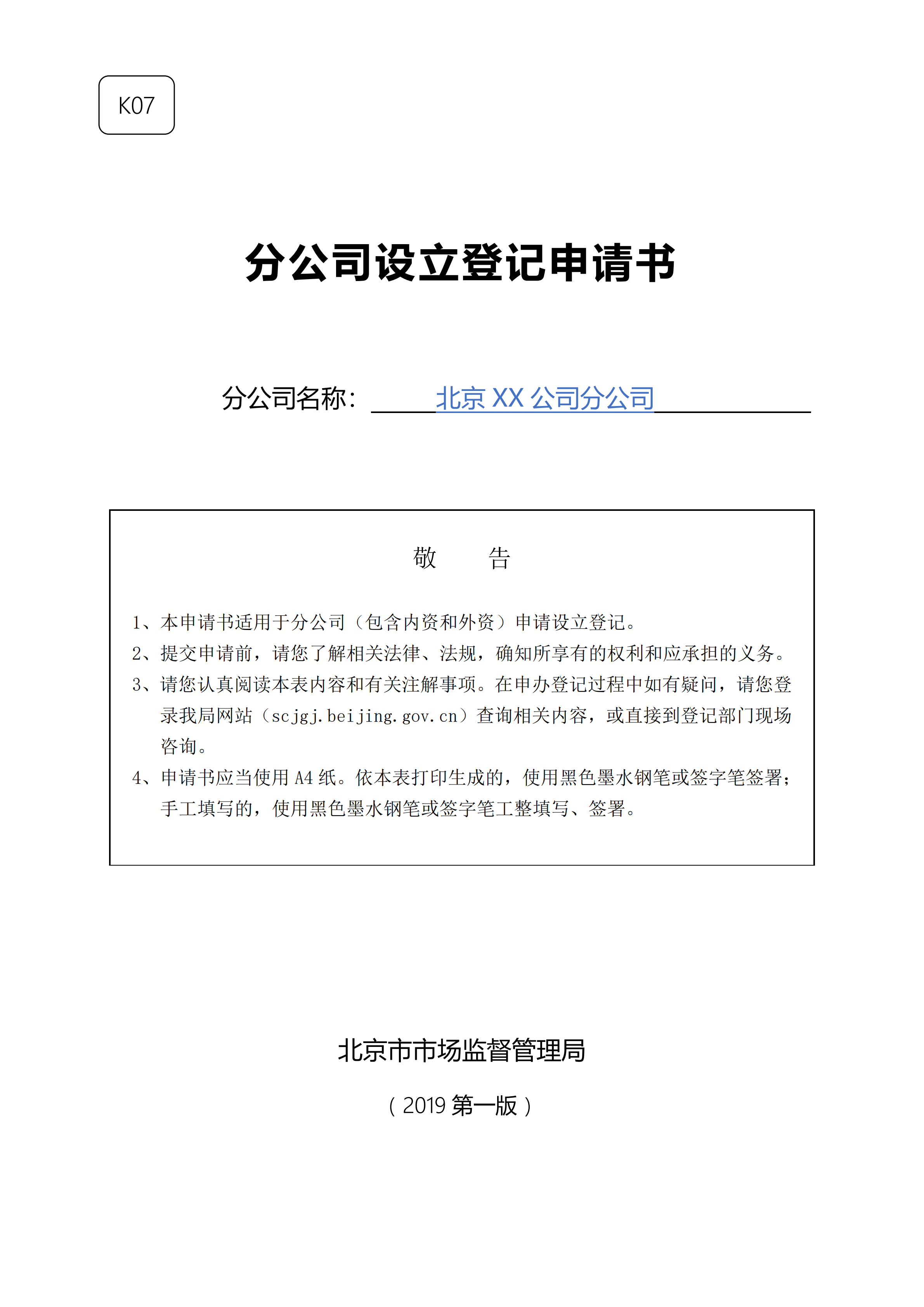 外商投资企业分支机构设立