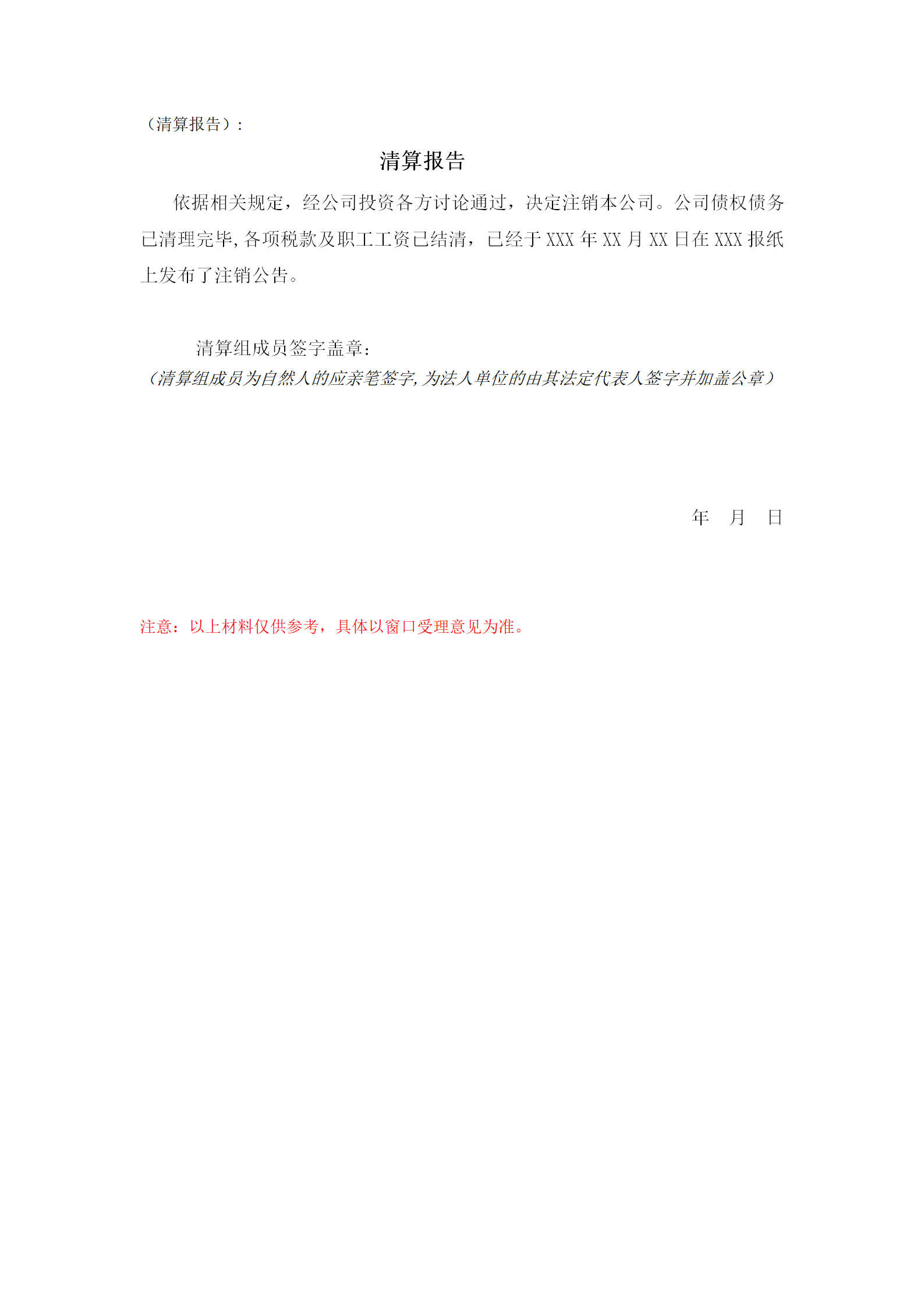 清算报告(有限责任公司)