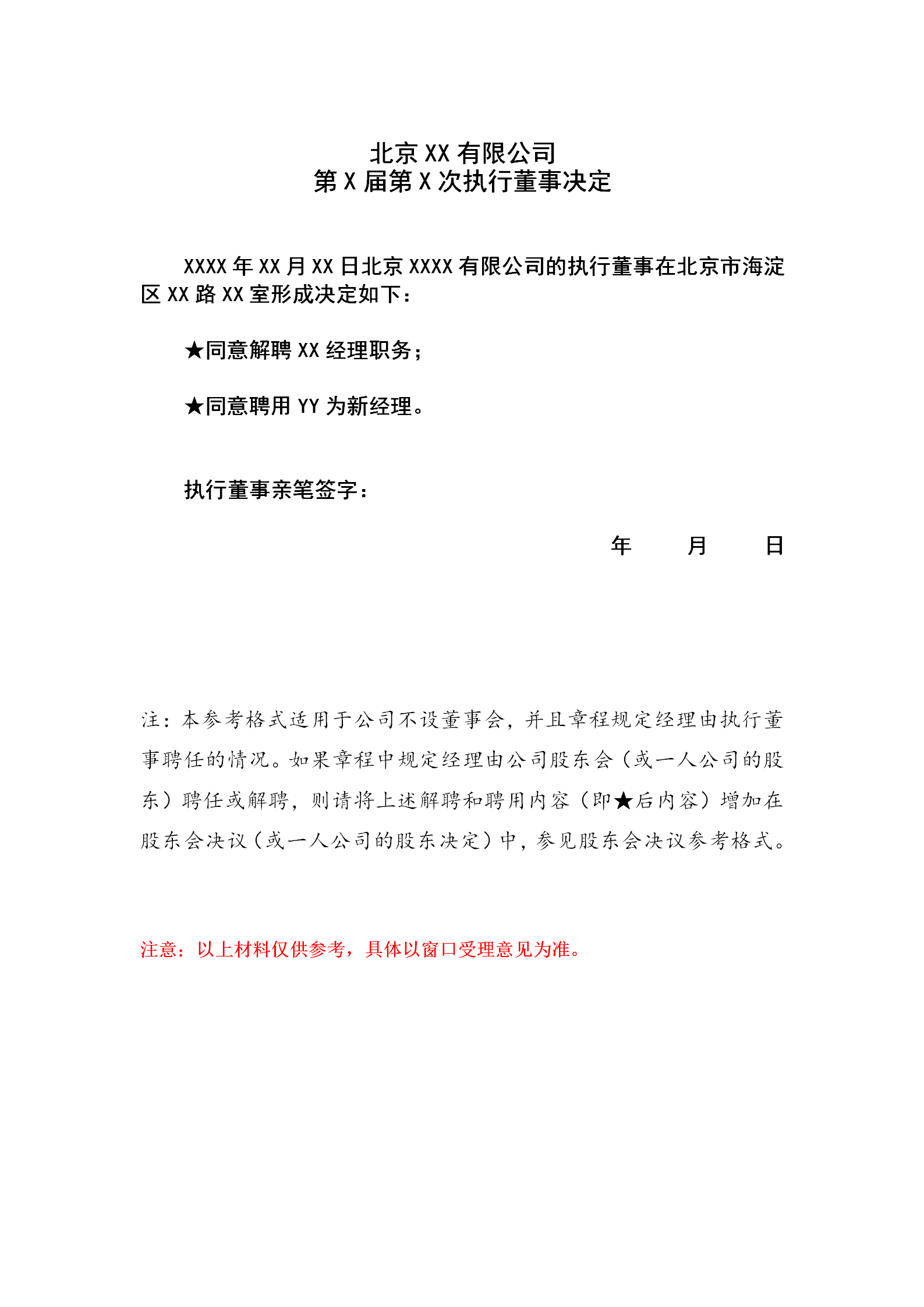 执行董事决定参考格式