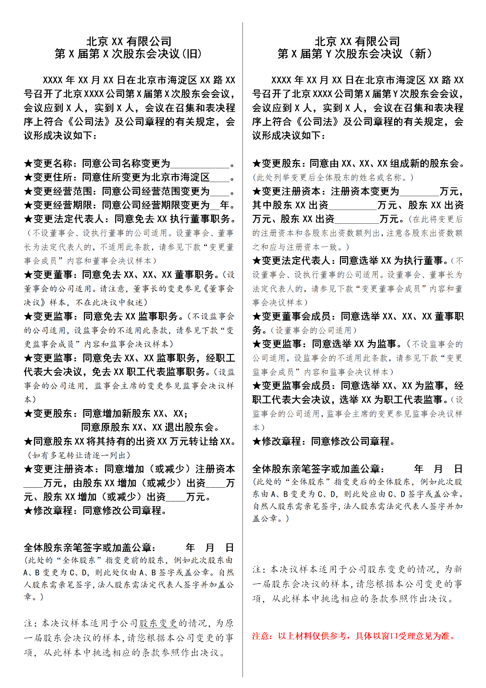 股东会决议参考格式(股东变更,两届决议)