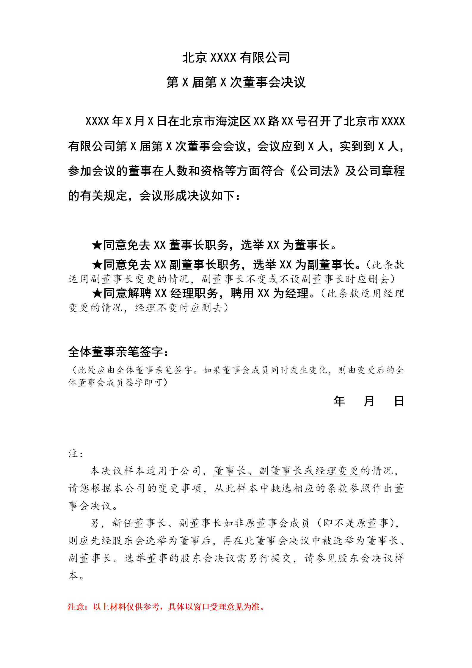 董事会决议参考格式
