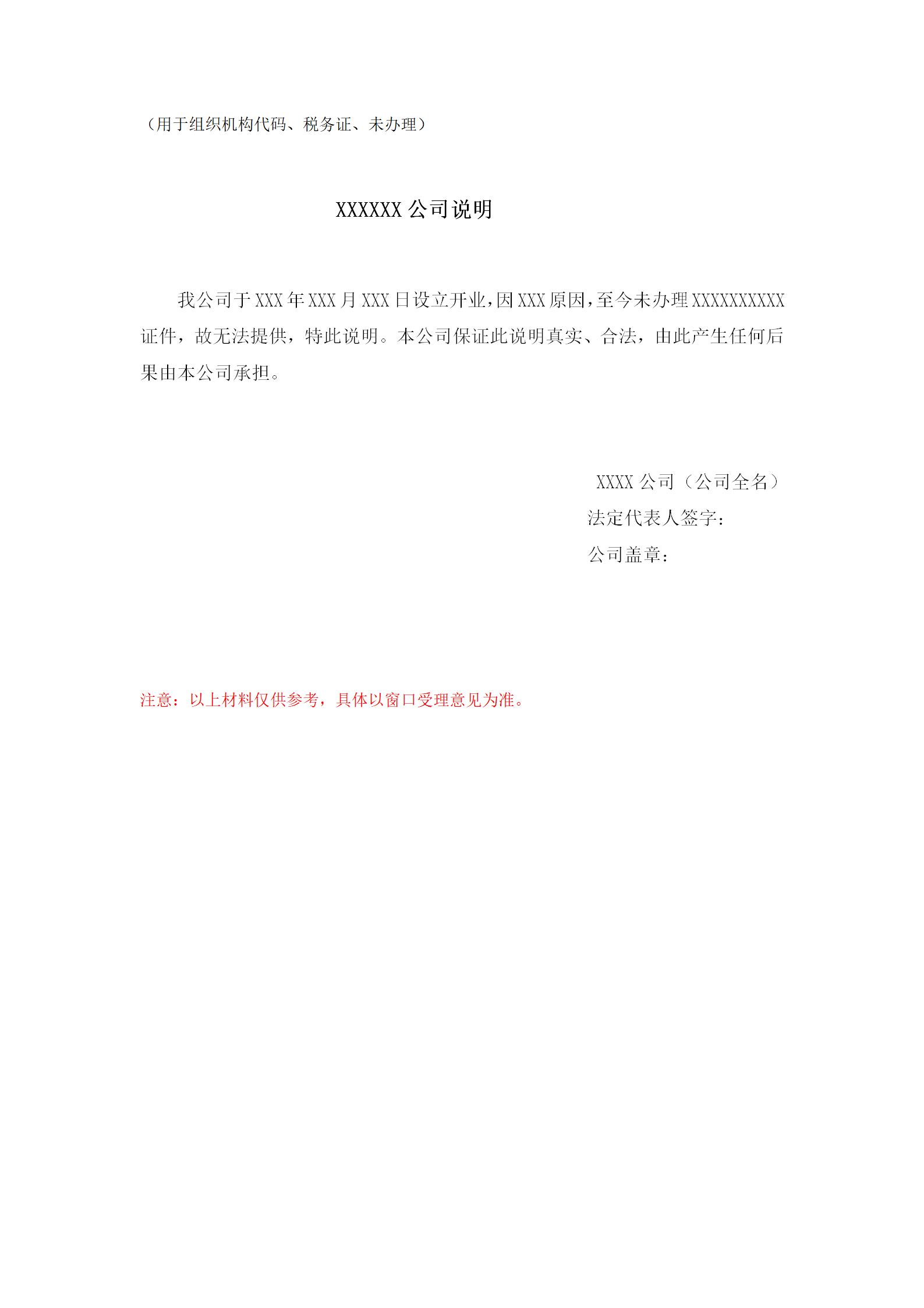用于组织机构代码、税务证、未办理