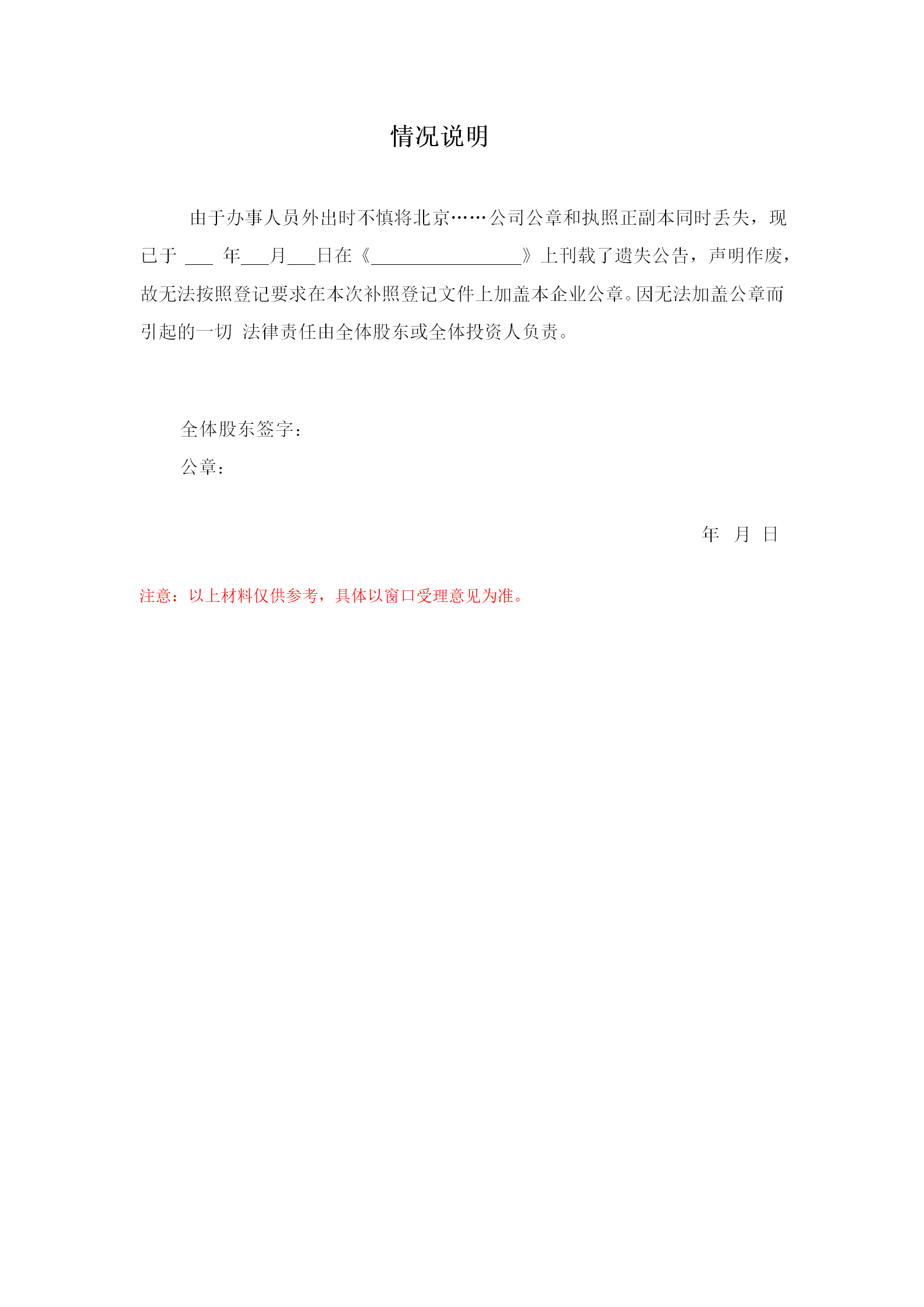 公章和执照正副本同时丢失情况说明