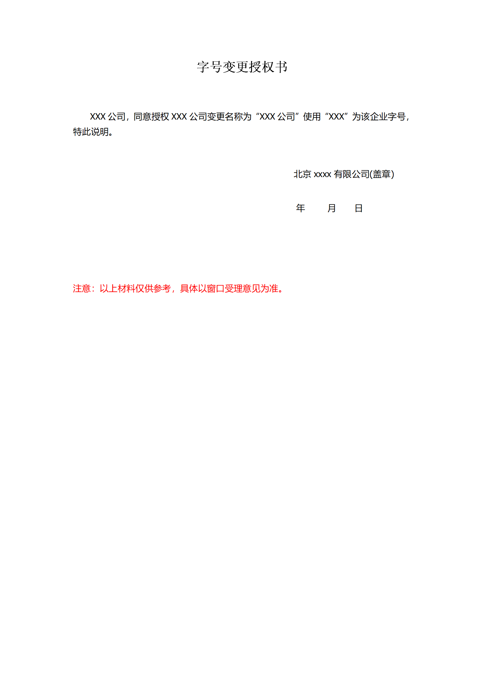 字号变更授权书