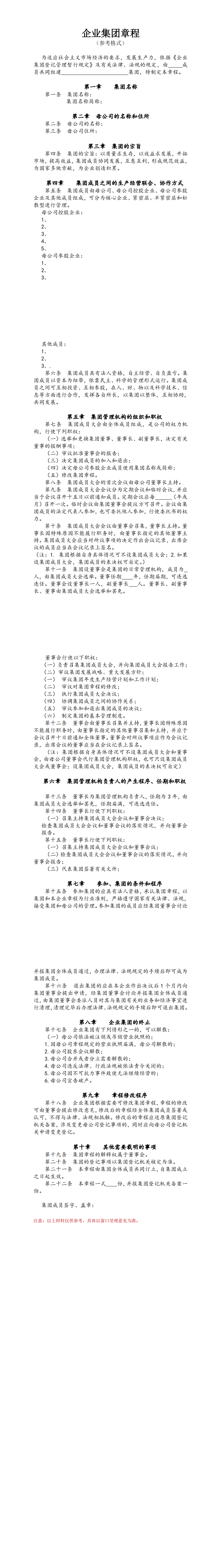 企业集团章程