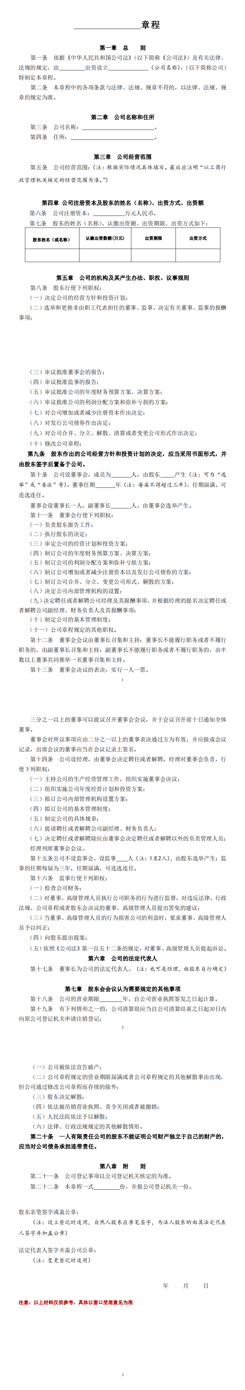 一人公司章程(202设董事会不设监事会)