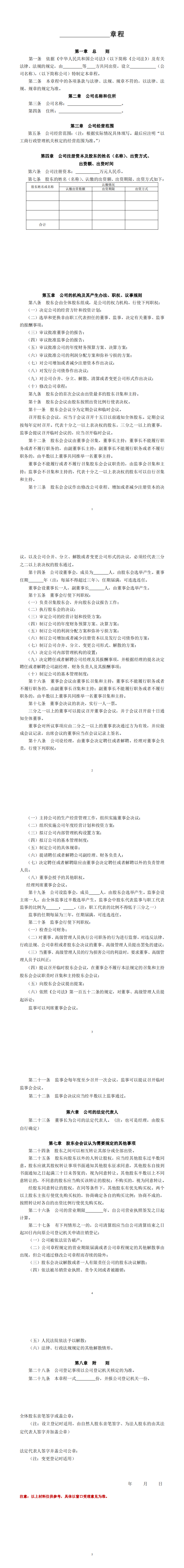 有限公司章程(101设董事会设监事会)