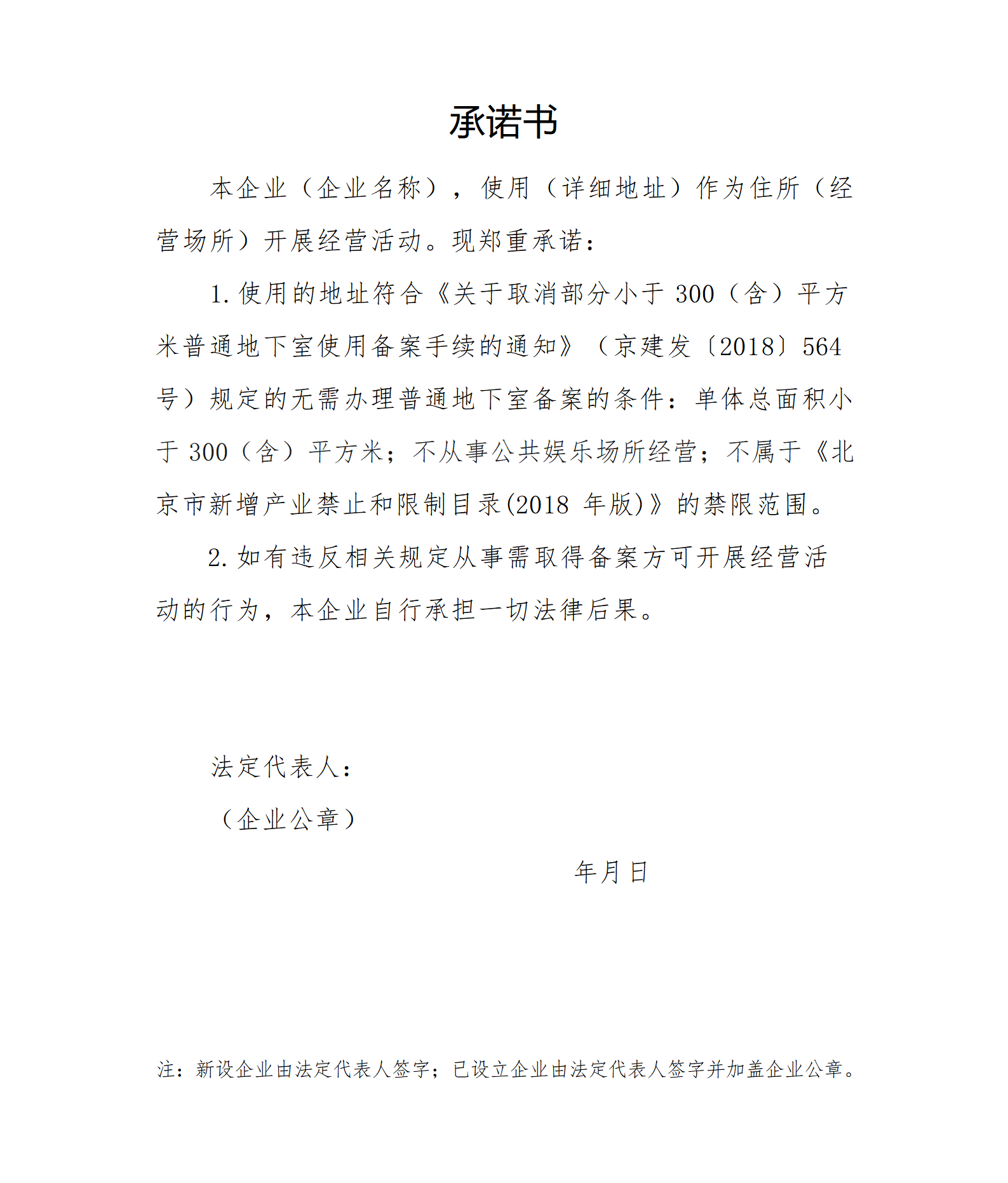 地下空间承诺书