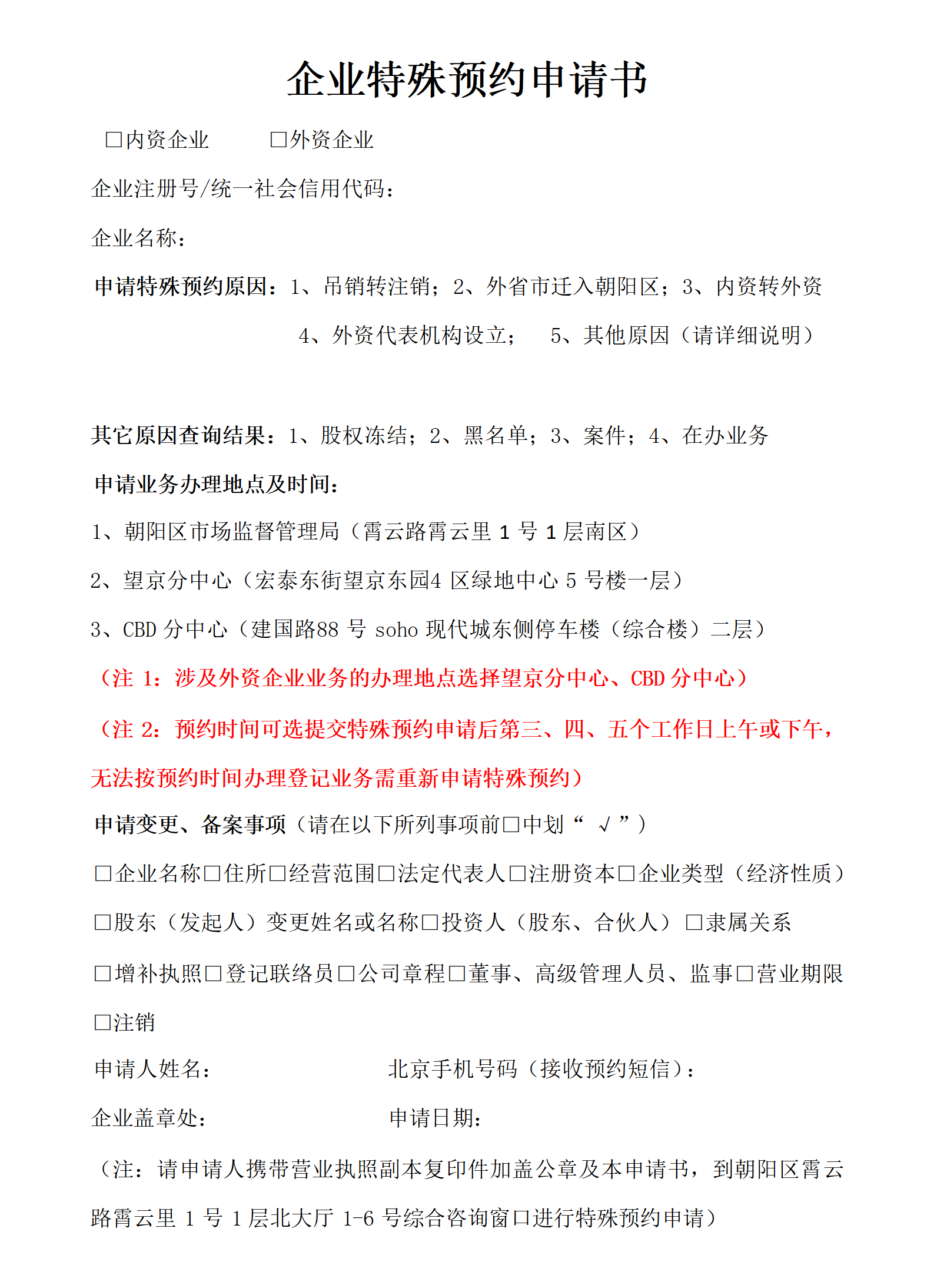 特殊预约申请书