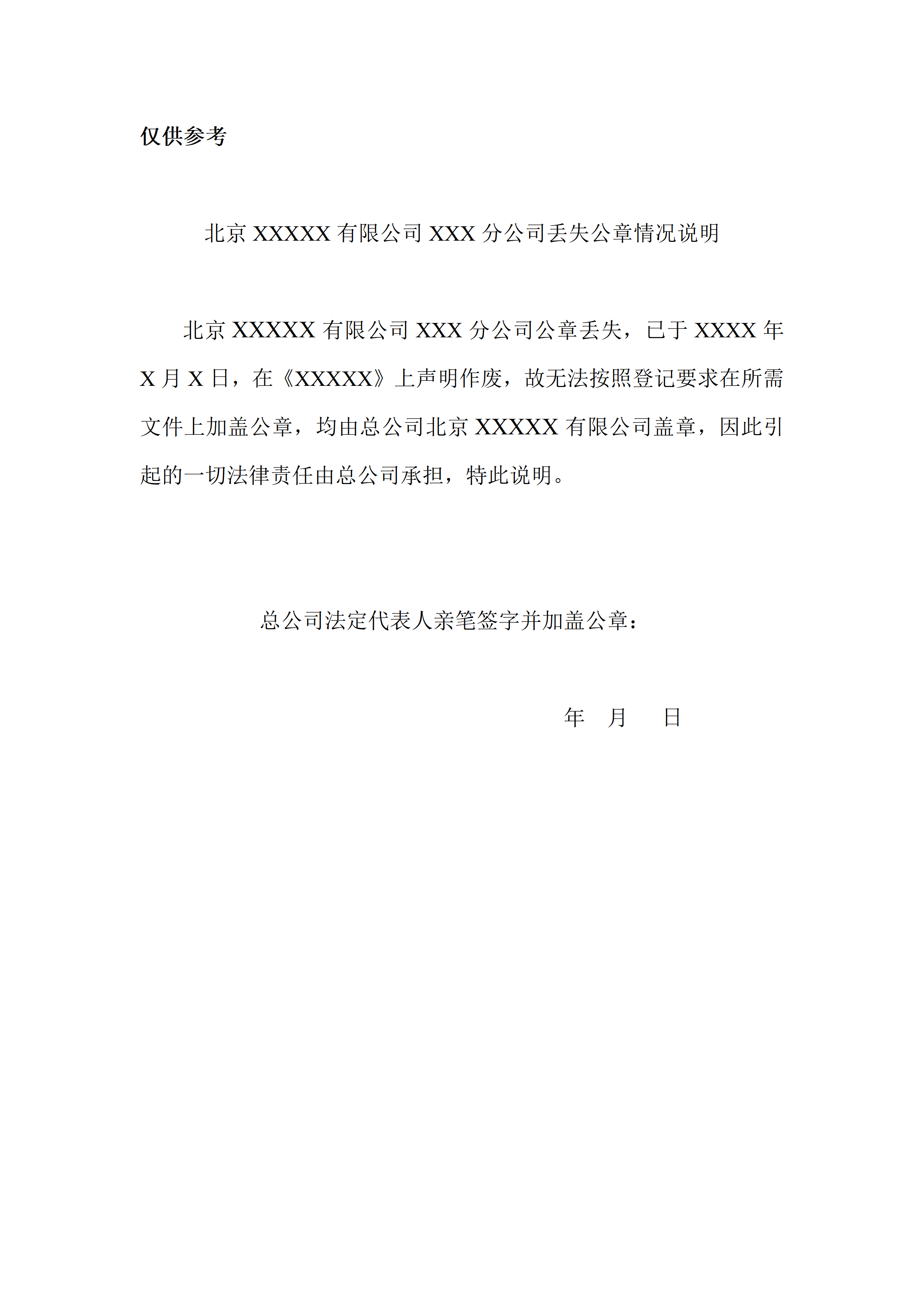 分公司(公章丢失说明)