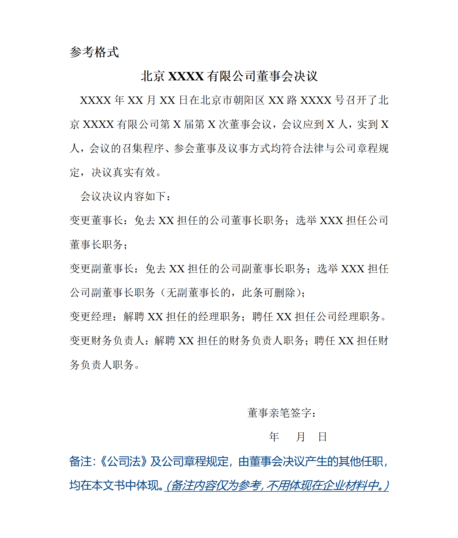 公司(董事会决议)