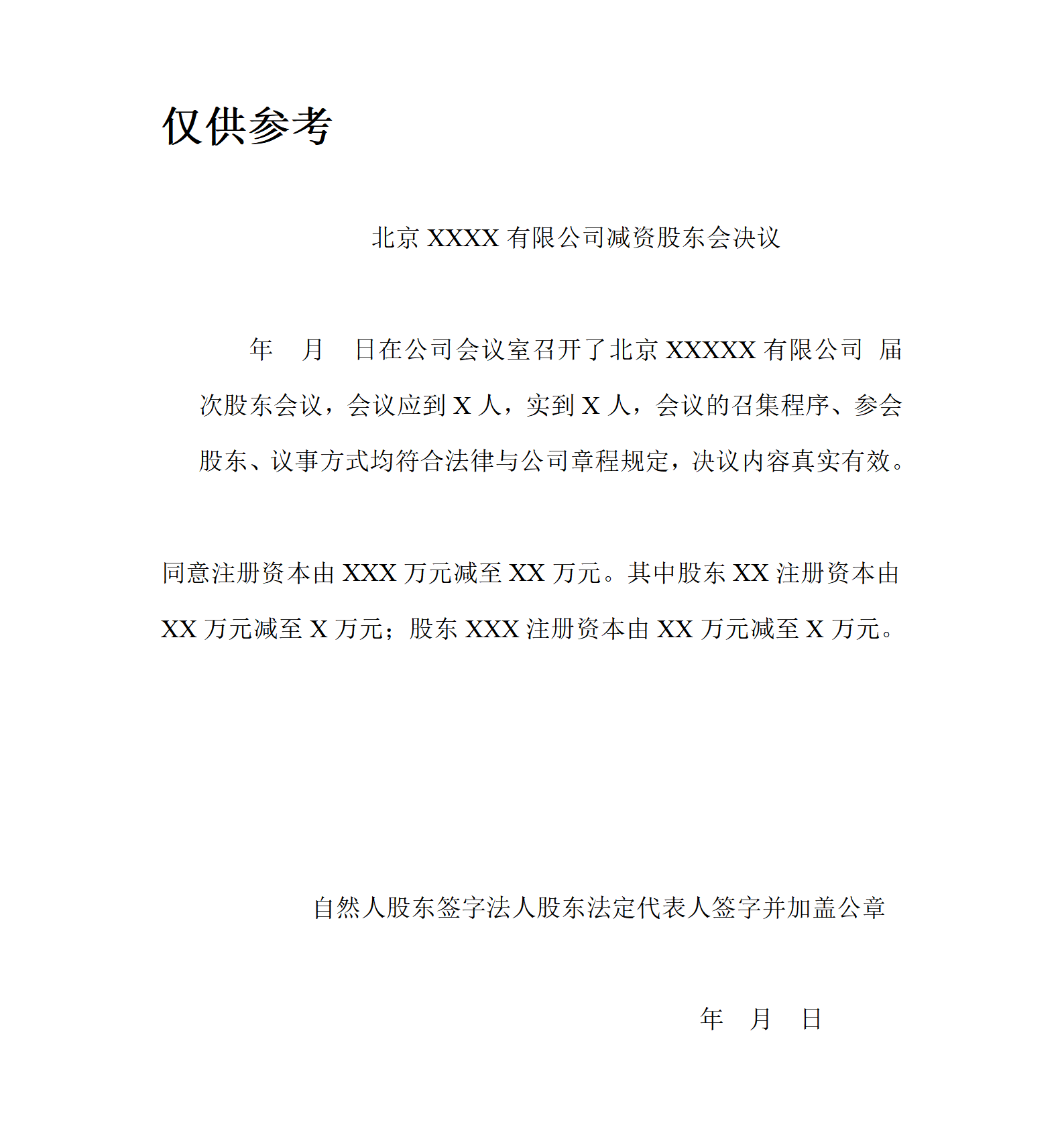 公司(减资后股东会决议)