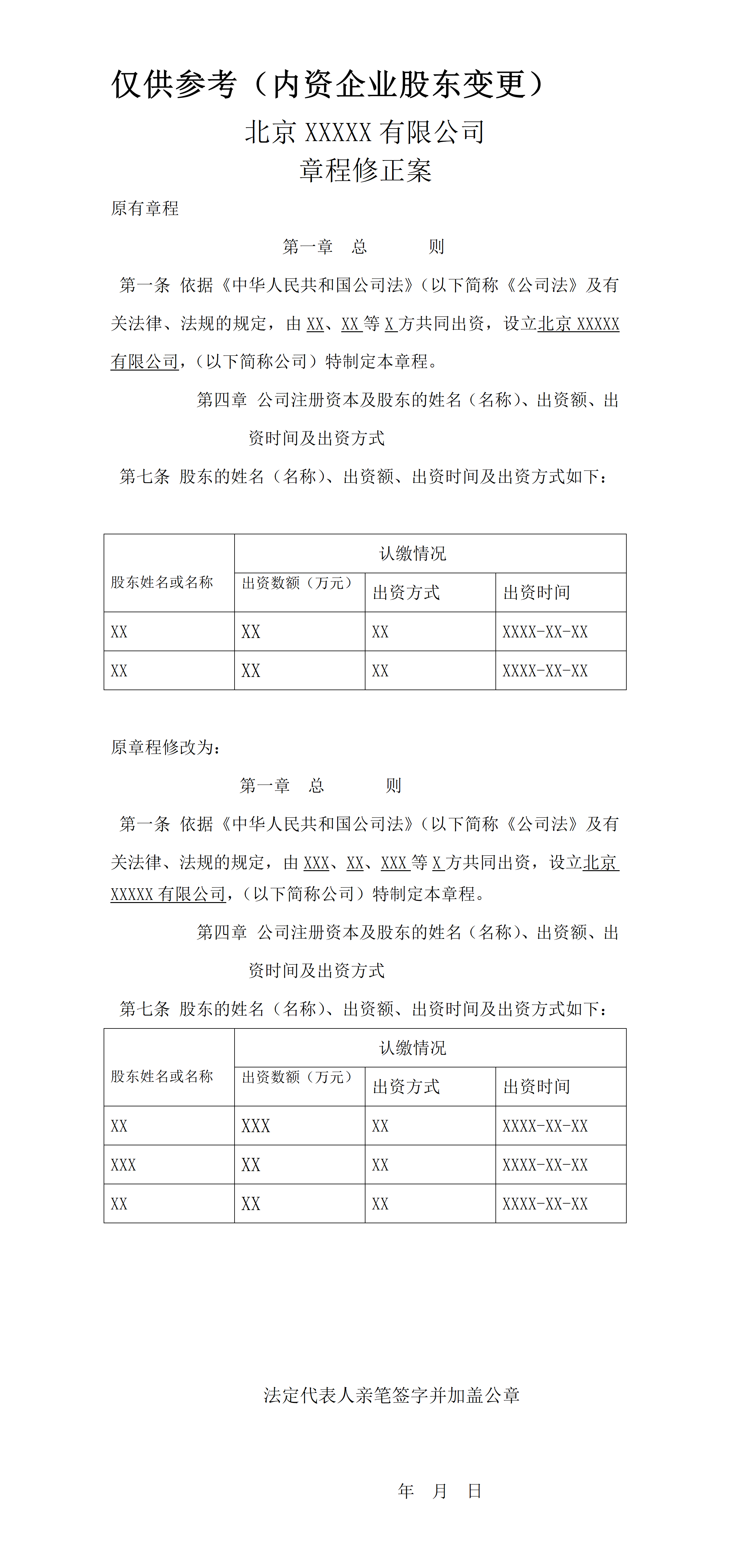 有限责任公司章程修正案