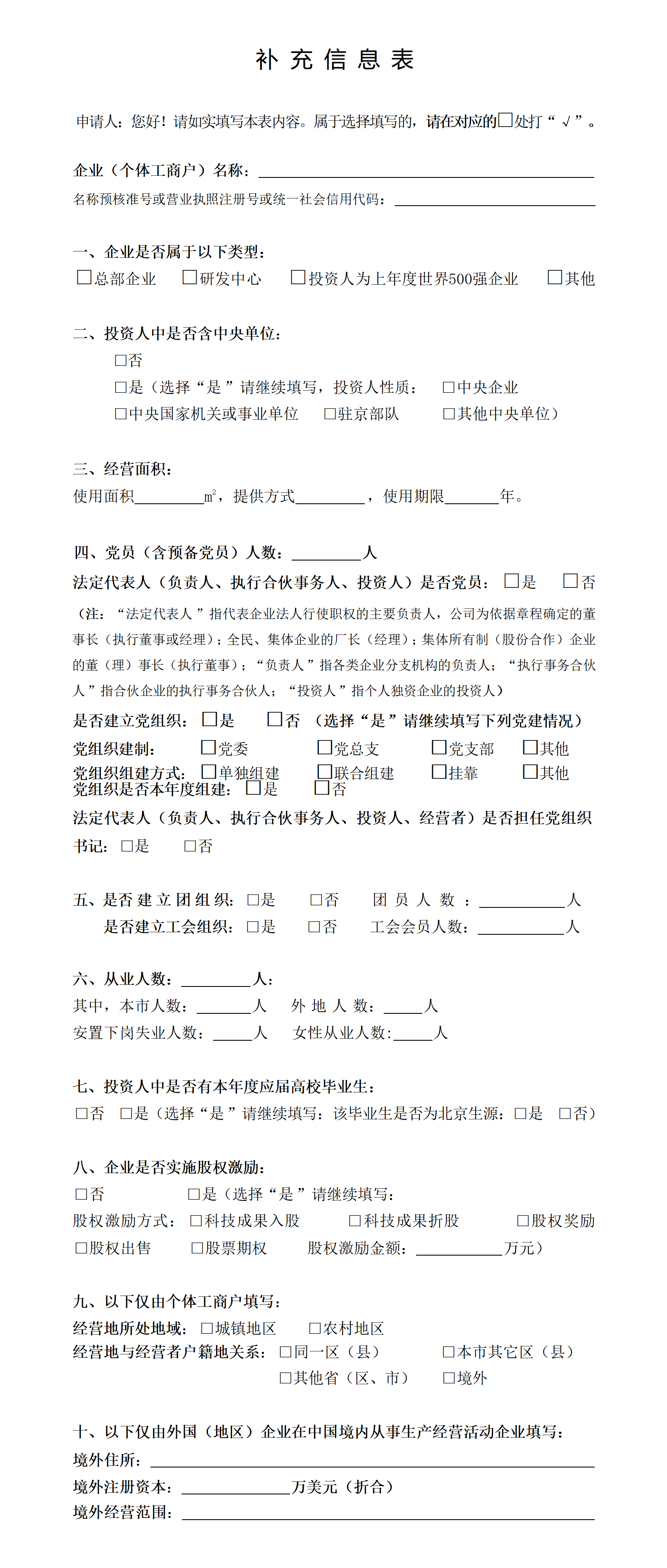补充信息登记表