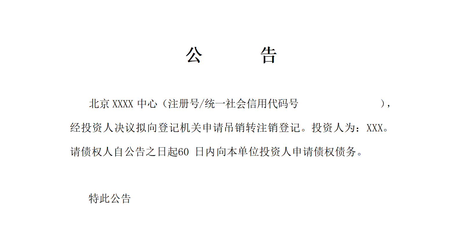 个人独资吊销转注销登报模板