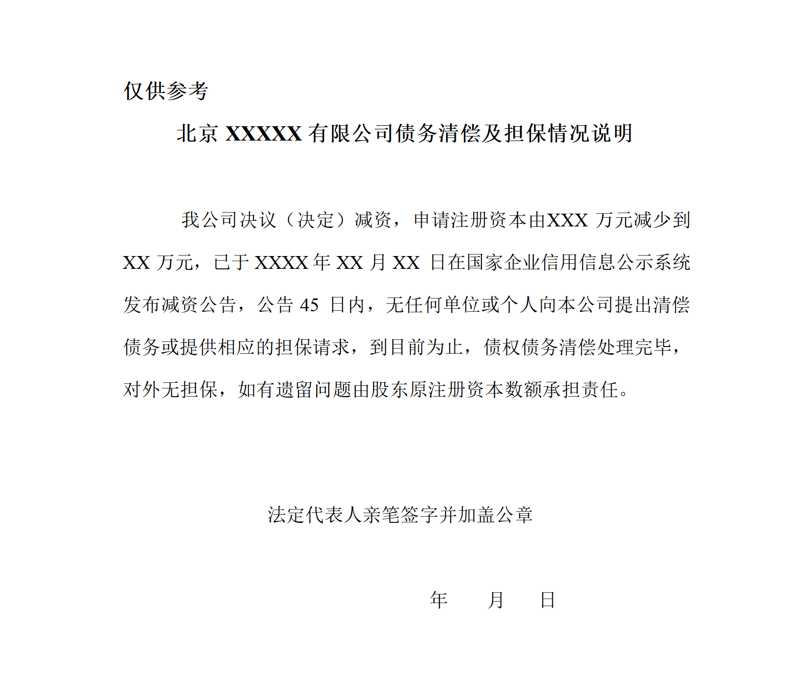 公司公告版本(减资情况说明)