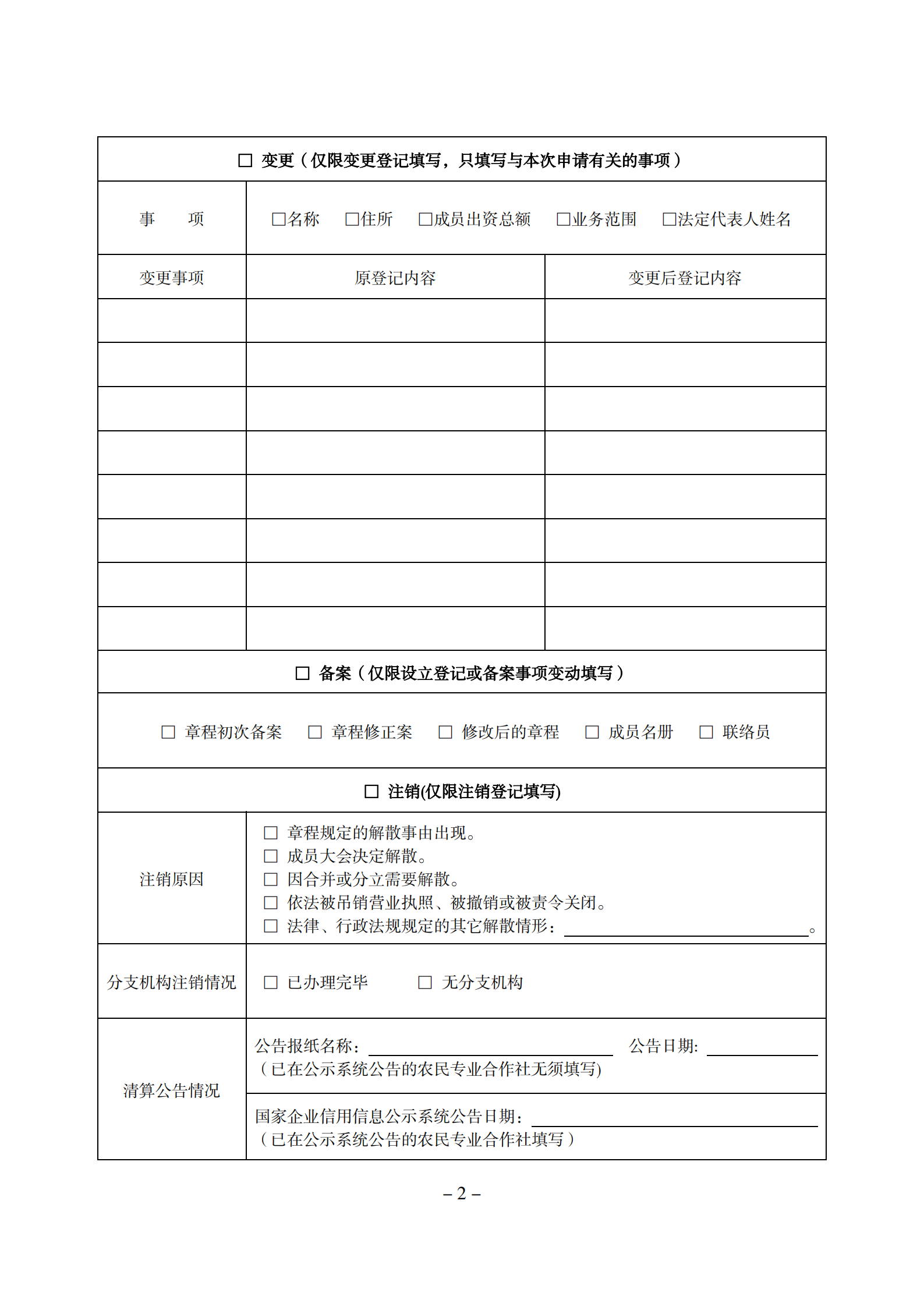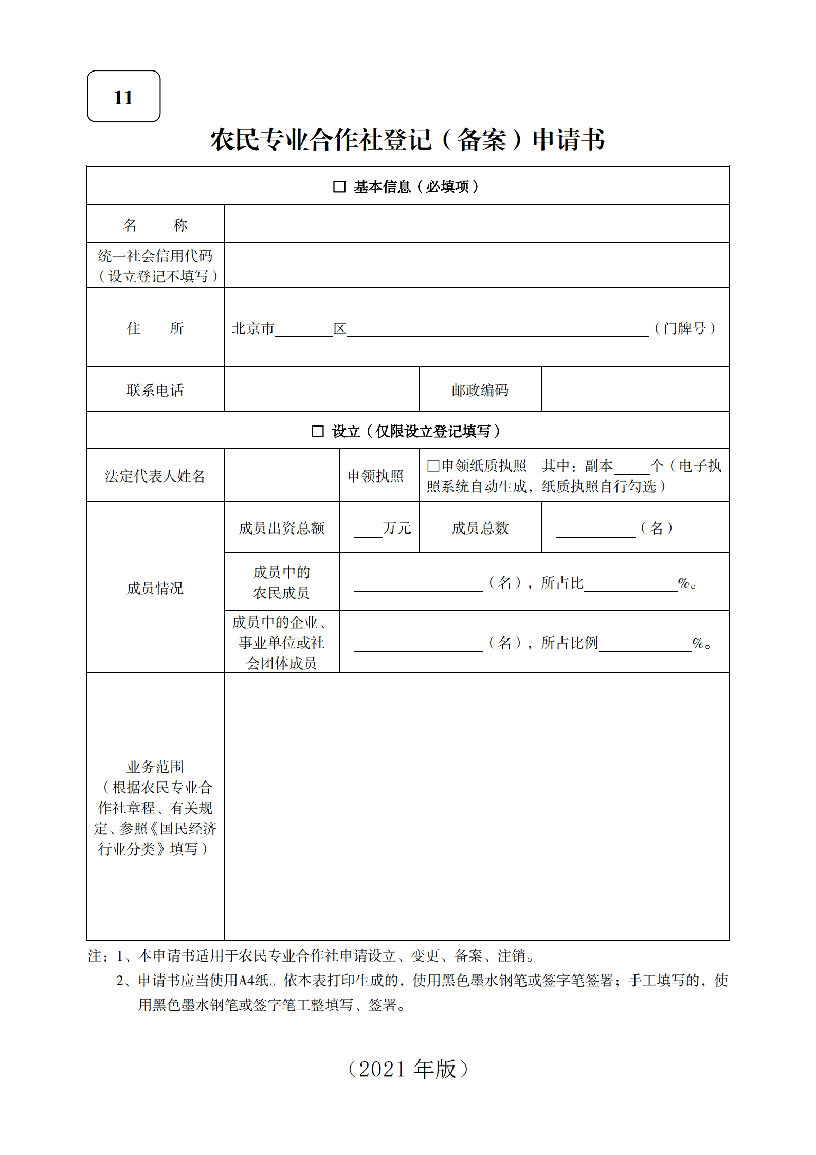 (2021版)农民专业合作社登记(备案)申请书