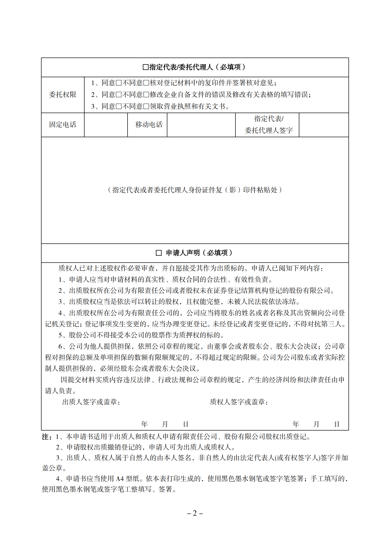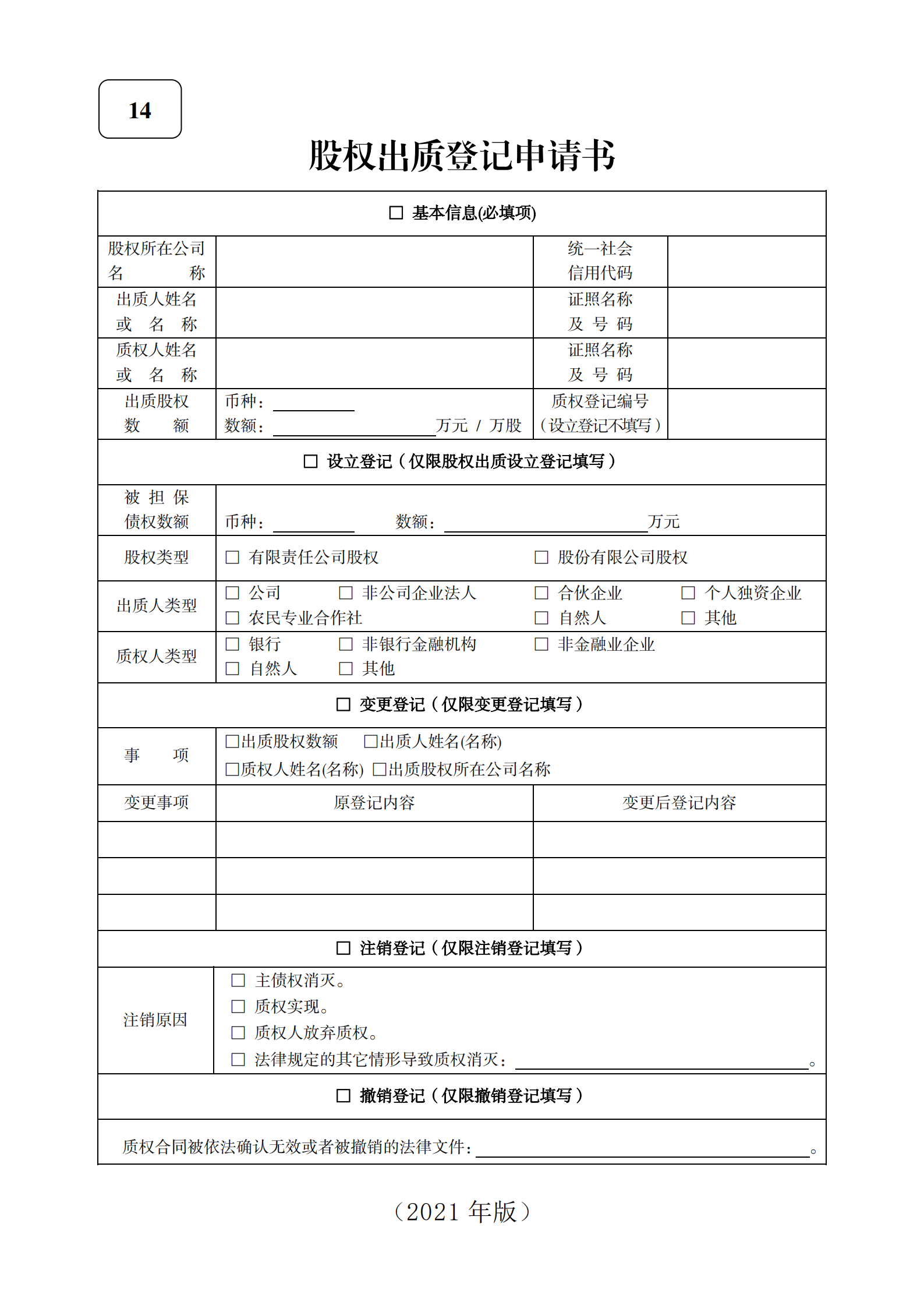 (2021版)股权出质登记申请书