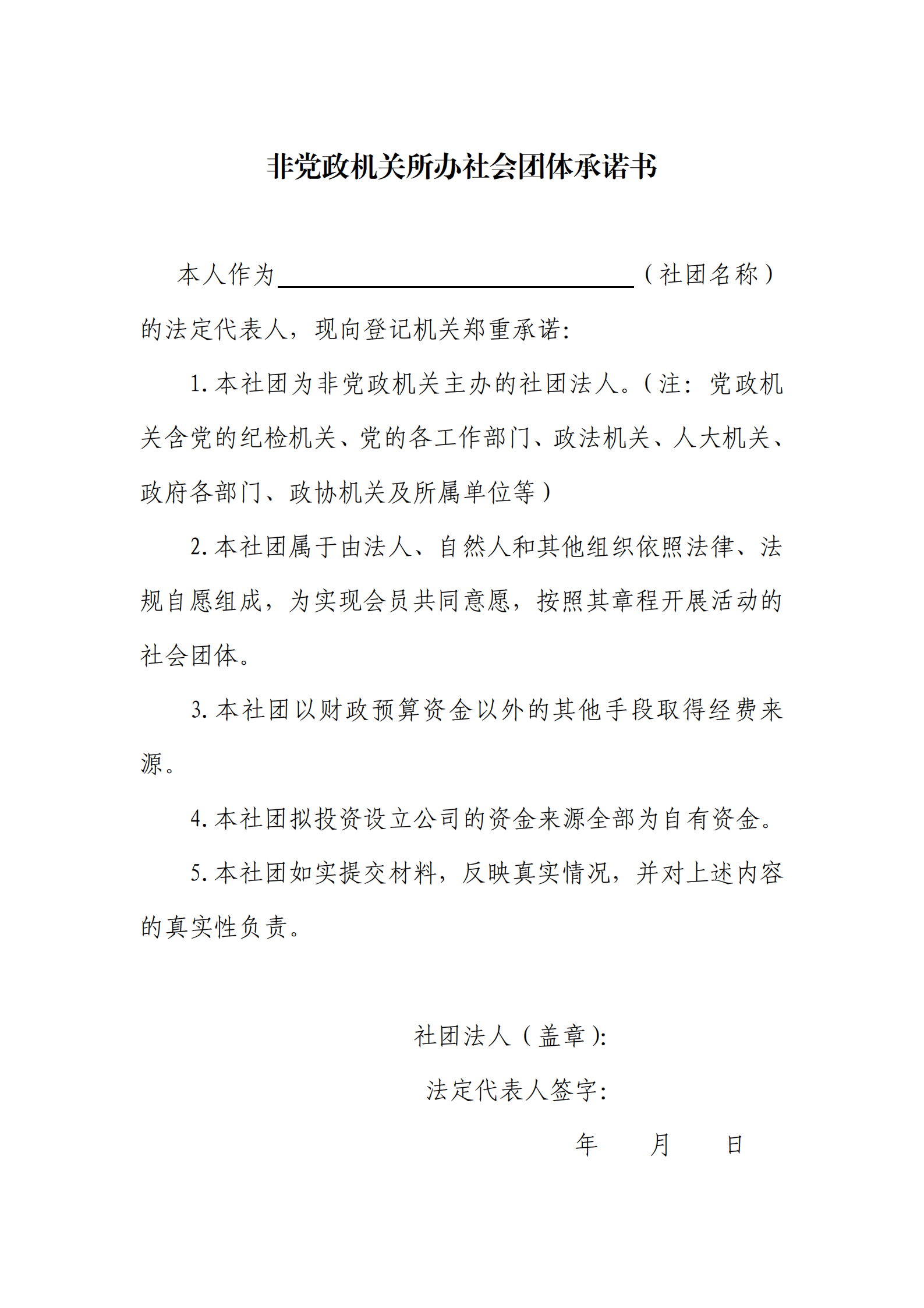 (2021版)非党政机关所办社会团体承诺书