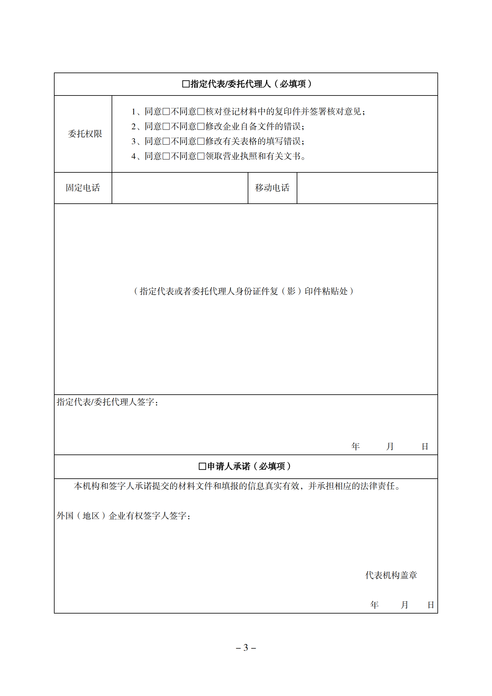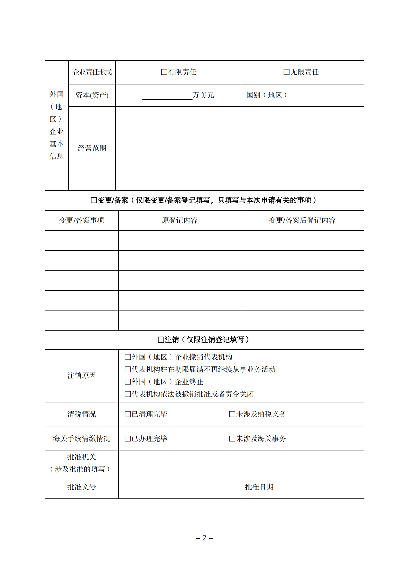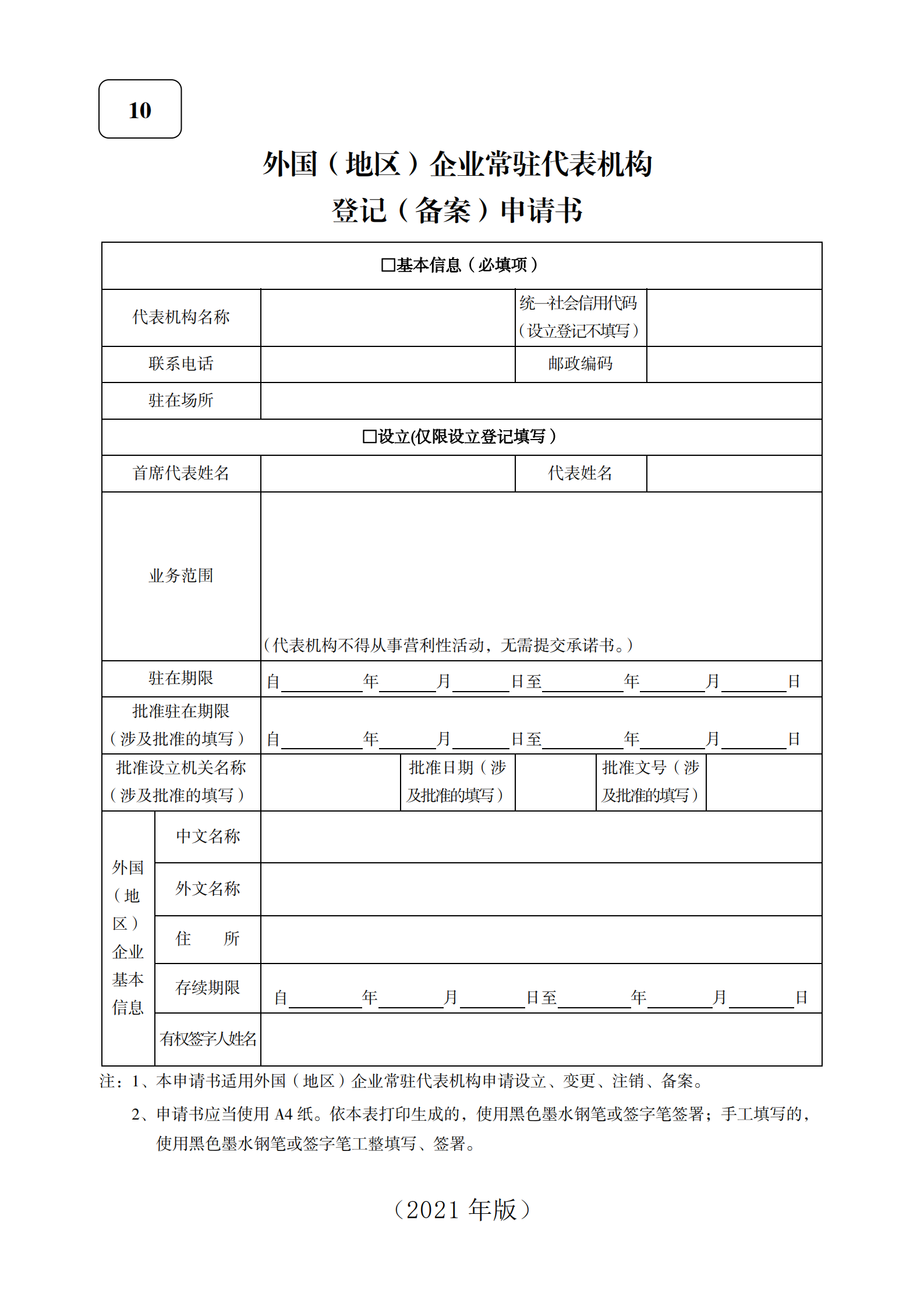 (2021版)外国(地区)企业常驻代表机构 登记(备案)申请书