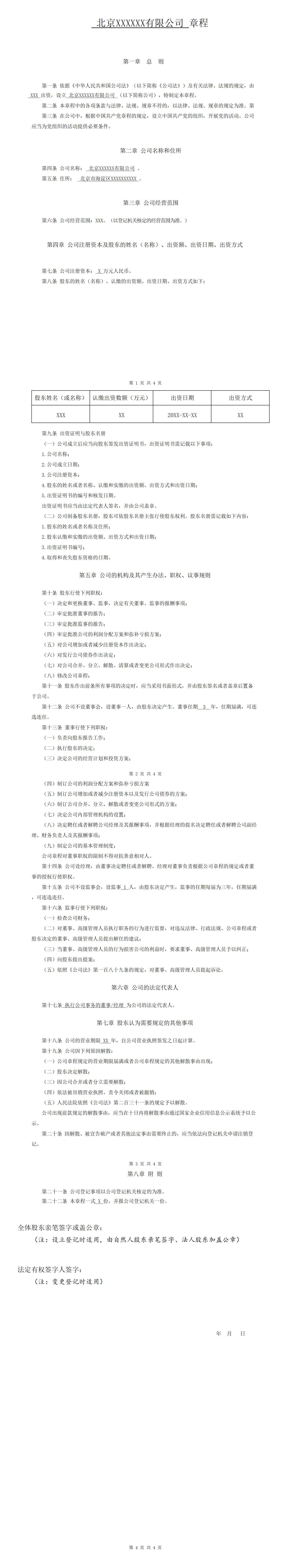 一个有限公司章程(不设董事会设监事)