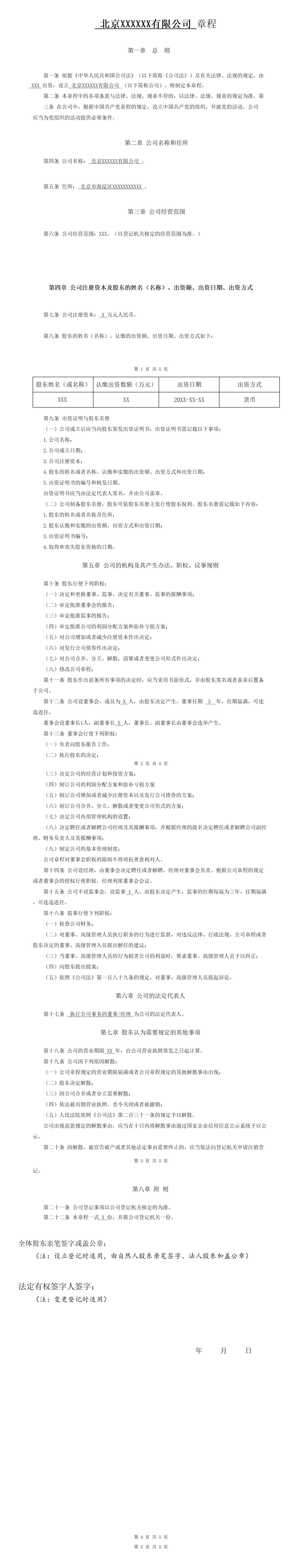 一人有限公司章程(设董事会、监事;不设审计委员会)